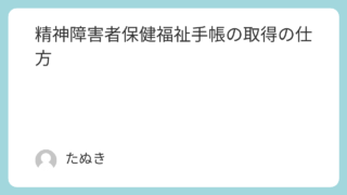 こんにちはたぬきです。今回は、精神障害者保健福祉手帳(以下、手帳)の取得の仕方と素朴な疑問についてお話しします。精神障害者保健福祉手帳とは?一定程度の精神障害があることを認定し、証明するためのものです。認定は都道府県及び政令指定都市において...